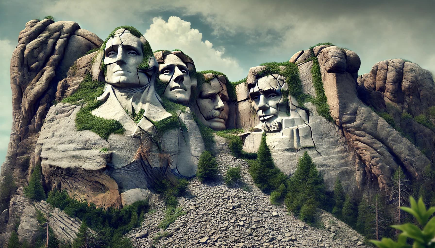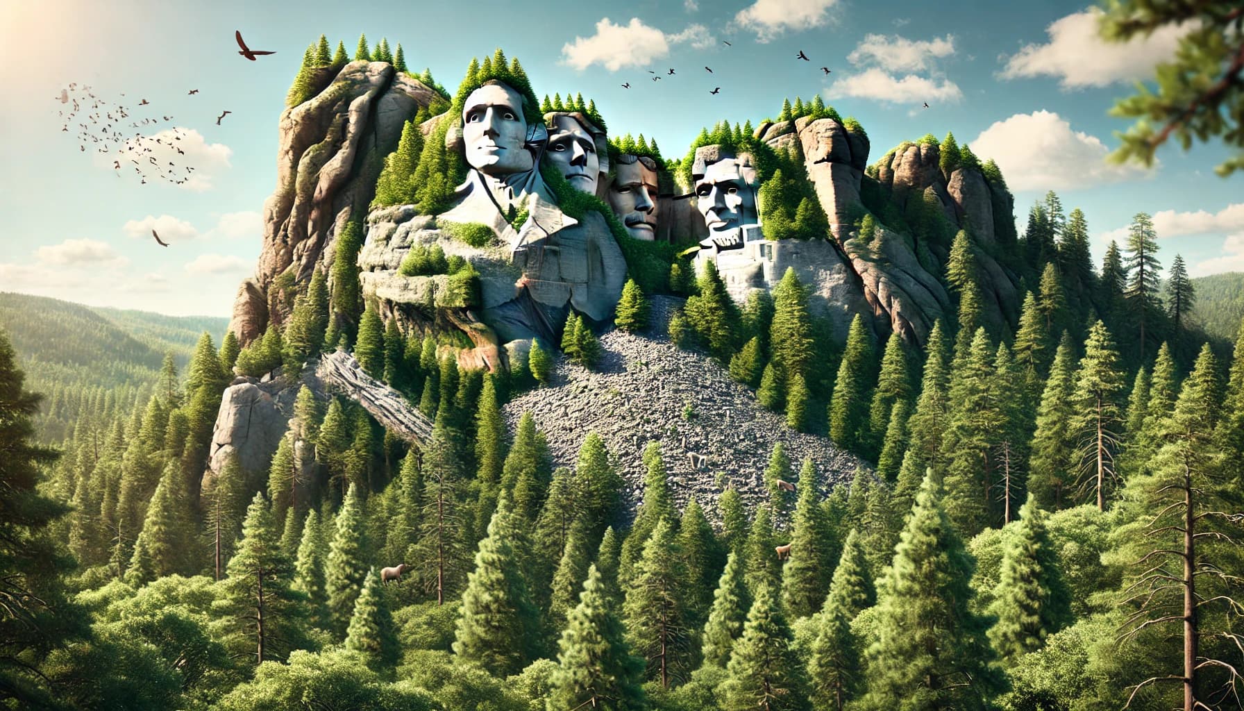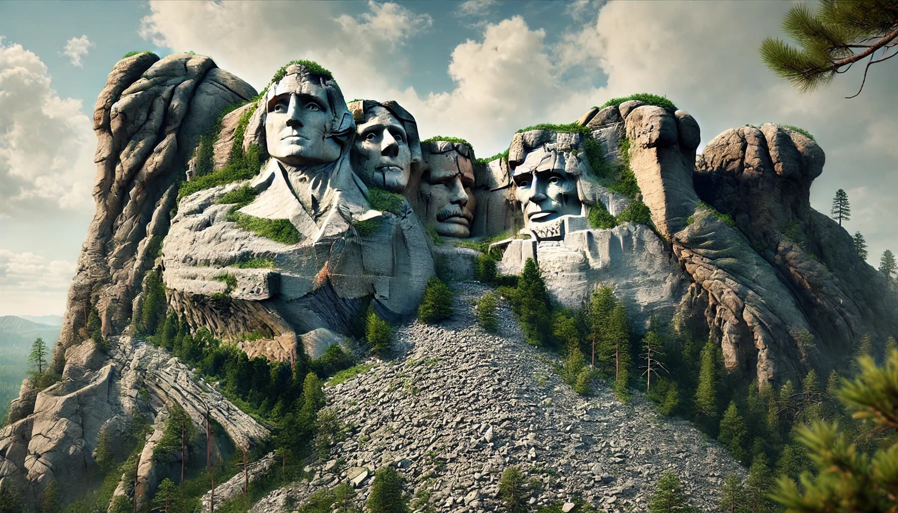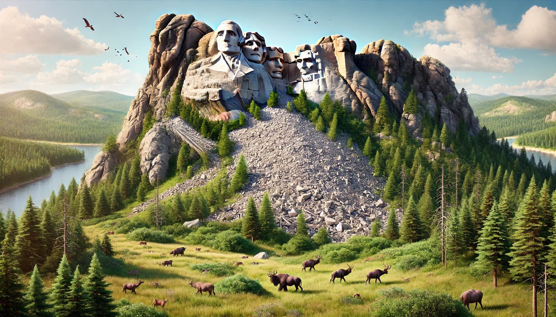 "description": "Thousands of volunteers swarm across Mount Rushmore, working tirelessly to restore the mountain to its original natural form. Scaffolding clings to the rock face as teams of workers carefully chip away at the carved presidents, while others use ropes.",